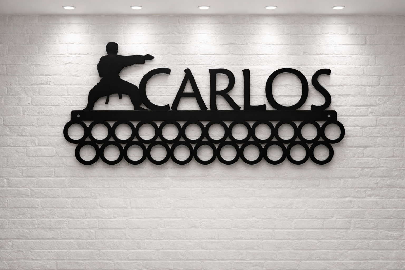 Pode escolher o tipo de organizador que deseja colocar no seu medalheiro, podendo ainda acrescentar uma fila extra para maior número de medalhas.