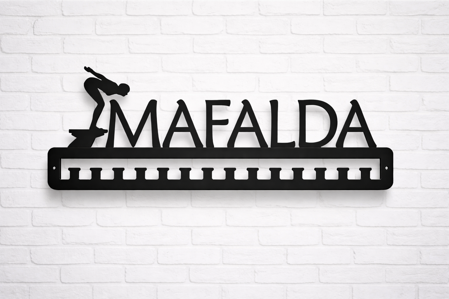 Medalheiro em madeira reciclada personalizável.